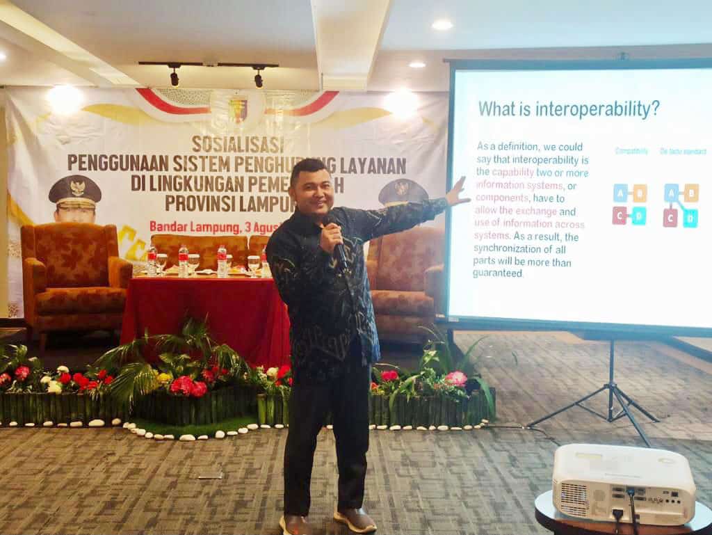 Bandar Lampung – Akademsi UBL Ahmad Cucus S.Kom., M.Kom yang juga praktisi di bidang teknologi informasi dan komunikasi menjadi narasumber dalam kegiatan sosialisasi penggunaan sistem penghubung layanan di lingkungan pemerintah provinsi Lampung. Kegiatan yang dilaksanakan oleh Dinas Komunikasi Informasi dan Statitika provinsi Lampung pada Kamis, 03/8/2023 di Swiss Belhotel, Bandar Lampung ini diadakan dalam rangka mewujudkan pemerintahan terintegrasi di lingkungan pemerintah daerah provinsi Lampung.