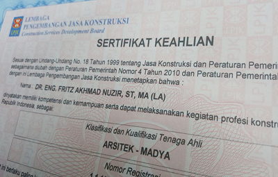 BANDAR LAMPUNG (ubl.ac.id) – Resmi menggenggam Sertifikat Keahlian (SKA) dengan kode 101 dari Lembaga Pengembangan Jasa Konstruksi (LPJK) Pusat Jakarta, Jum’at (11/08/2017) lalu, berhasil membuktikan kapasitas pencapaian prestasi akademisi Universitas Bandar Lampung (UBL) Dr. Eng. Fritz Akhmad Nuzir, S.T., MA (LA)., di ranah nasional. Pentingnya SKA LPJK, bagi akademisi dan praktisi dibidang kontruksi sebagai salah satu persyaratan utama pengajuan permohonan Sertifikasi dan Registrasi Badan Usaha bidang Jasa Konstruksi. Penetapan SKA ditentukan Penanggung Jawab Teknik (PJT) atau Penanggung Jawab Bidang (PJB) LPJK.