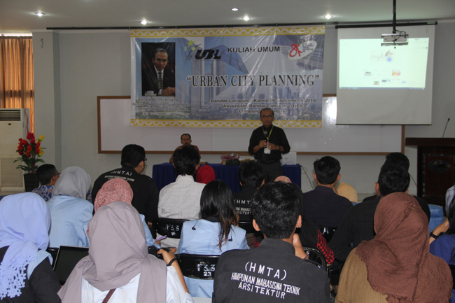 Hal itu ditegaskan dalam Kuliah Umum Urban City Planning di hadapan mahasiswa berbagai angkatan Program Studi Arsitektur di Aula Gedung F, Kampus Drs. H. RM. Barusman pada Kamis (29-9).