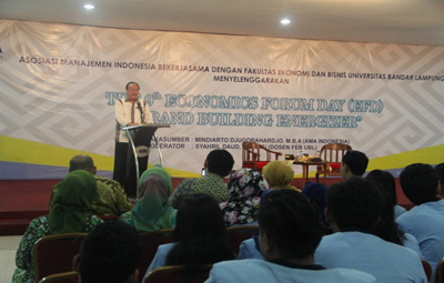 BANDARLAMPUNG – Fakultas Ekonomi dan Bisnis Universitas Bandar Lampung kembali menggelar The Economics Forum Day bersama Asosiasi Manajemen (AMA) Indonesia. The Economics Forum Day bertemakan Brand Building Energizer di Aula Gedung M, Kampus Dra. Hj. Sri Hayati Barusman, Sabtu (16/09/2017) lalu. Forum Ekonomi ini, mengundang seorang Ketua Harian AMA Mindiarto Djugorahardjo, MBA. Kegiatan ini, menjadi ajang membangun jiwa entrepreneurship dikalangan mahasiswa program studi ekonomi di Universitas Bandar Lampung terutama Manajemen dan Akuntansi.