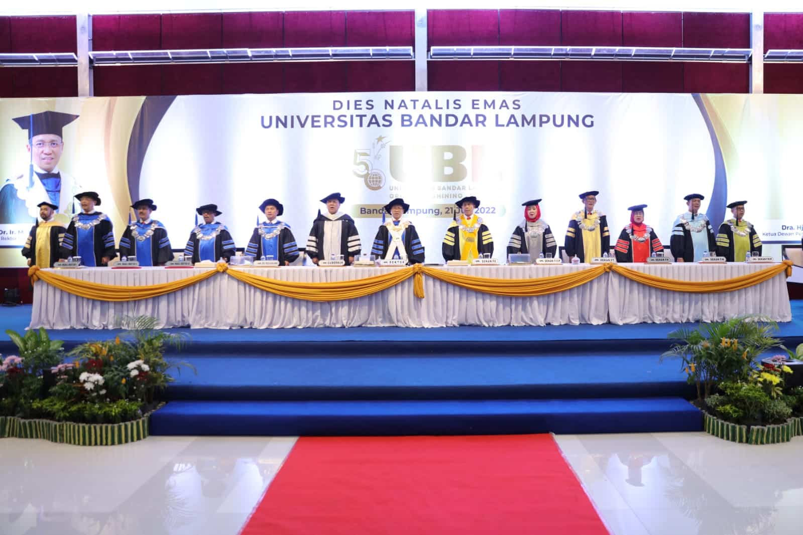 [UBL] : Bandar Lampung – Menapaki usianya yang mencapai setengah abad, Universitas Bandar Lampung (UBL) yang merupakan Perguruan Tinggi Swasta (PTS) terbesar di Provinsi Lampung menggelar puncak perayaan Dies Natalis ke-50 bertajuk “Growing, Shining dan Winning” di Mahligai Agung Convention Hall, Pascasarjana UBL. Kamis, (21/07/2022).