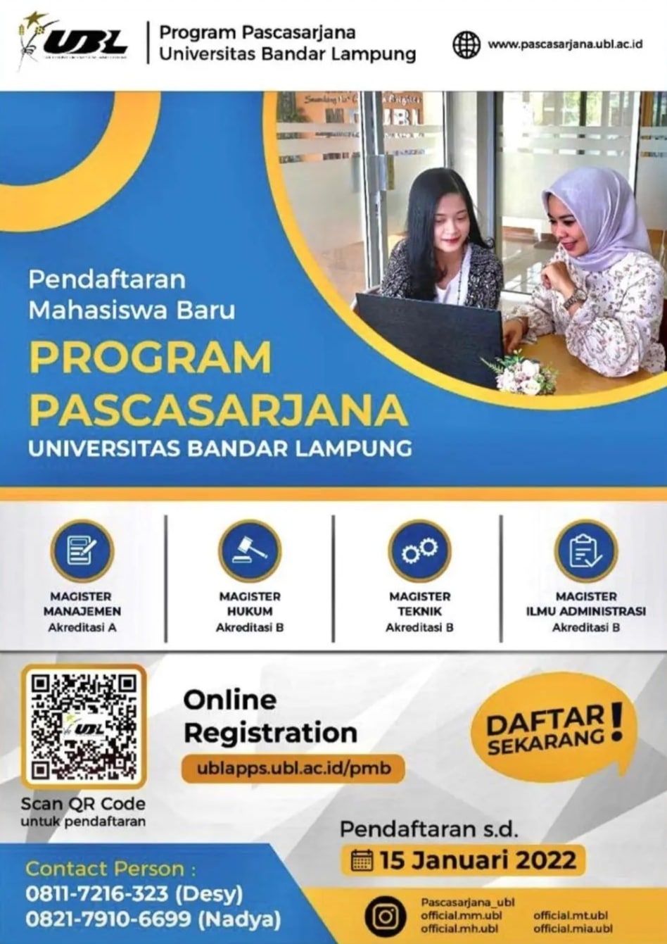Instagram: @pascasarjana_ubl ; @official.mm.ubl ; @official.mh.ubl ; @official.mt.ubl ; @official.mis.ubl