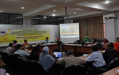 Fakultas Ekonomi dan Bisnis Universitas Bandar Lampung (FEB UBL) sukses menggelar Workshop Sehari Teknik Penulisan Jurnal Internasional bagi Dosen FEB UBL pada Rabu (4-2), kemarin di Gedung Rektorat, Kampus Drs. H. RM. Barusman UBL. Dalam kegiatan yang dihadiri Wakil Rektor UBL BIdang Akademik, Dekan FEB, Ketua Program Studi dan para Dosen FEB UBL ini menghadirkan narasumber asal Universitas Trisakti Jakarta, Prof. Dr. Asep Hermawan, DBA. Dekan FEB UBL, Dr. Andala Rama Putra Barusman, S.E., MA.Ec., menuturkan kegiatan ini diselenggarakan bertujuan untuk memotivasi, mengarahkan dan membina kemampuan meneliti para dosen, memberikan pemahaman yang lebih baik bagi dosen dalam penyusunan artikel ilmiah untuk publikasi jurnal internasional. Selain itu, kegiatan ini juga bertujuan agar para dosen mampu menerapkan tatacara penulisan dan penyusunan penelitian serta artikel ilmiah dengan baik dan benar. “Penelitian merupakan salah satu tugas pokok dosen dalam Tri Dharma Perguruan Tinggi sehingga penelitian penting untuk dikembangkan agar tercipta kualitas pendidikan yang baik melalui karya ilmiah. Dengan penelitian ilmiah inilah akan lahir temuan-temuan baru yang diharapkan dapat memberikan kontribusi signifikan bagi masyarakat di Provinsi Lampung khususnya dan di Indonesia pada umumnya,” ujar Andala. Sementara itu, dalam pemaparannya, Prof. Dr. Asep Hermawan, DBA., menjelaskan tentang beberapa kiat penyusunan penelitian dosen, dan kiat menulis artikel ilmiah untuk publikasi jurnal berskala internasional. Ditegaskan Asep, dalam penelitian harus mencantumkan sumber dari data yang diperoleh peneliti, hal ini dilakukan untuk menghindari plagiarism. “Beberapa karakteristik dari topik disertasi yang baik diantaranya need for research, amenable to research methods/ more specific, achievable in reasonable time, symmetry of potential outcomes / has more than one potential outcomes, matches student capabilities and interest, attractive for funding, and area for professional development,” papar Asep. Untuk diketahui, UBL telah meluncurkan 2 (dua) buah Jurnal Internasional diantaranya International Journal of Engineering Science and Technology Development (IJEST) dan International Journal on Education (IJED) yang sudah terindeks pada Scopus dan ISI serta telah dipublikasikan secara onlinemelalui World Applied Science Journal. International Journal of Engineering Science and Technology Development (IJEST) meliputi bidang utama sains dan teknik diantaranya Ilmu Komputer, Arsitektur, Matematika dan Statistik Aplikasi, Kimia, Fisika, Biologi, Geologi. Sedangkan International Journal on Education (IJED) meliputi bidang utama pendidikan diantaranya Pengembangan Kurikulum, Pendidikan Bahasa, Pendidikan Sains, Pendidikan Matematika, Ilmu Sosial Pendidikan, Metode Pengajaran, Manajemen Pendidikan, Teknologi Pendidikan, dan Pendidikan Agama. |