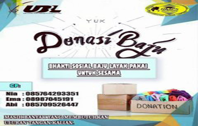 Bulan suci Ramadhan 1438 Hijrah dijadikan sebagai ajang untuk mempererat tali silatuhrahmi dengan sesama. Hal ini pun yang membuat Himpunan Mahasiswa Program Studi Akuntansi Universitas Bandar Lampung (UBL) melakukan kegiatan penggalangan Baju Layak Pakai Untuk Sesama, Jumat (26/5) lalu. Panitia Pelaksana Nia pun menjelaskan acara donasi baju berupa pengumpulan pakaian layak pakai bagi masyarakat yang membutuhkan. Selain dalam rangka menyambut Bulan Suci Ramadhan 1438 H tetapi juga sebagai ajang pembiasaan diri bagi para mahasiswa Program Studi Ekonomi Akuntansi Fakultas Ekonomi dan Bisnis (FEB) untuk memperdalam jiwa kepedulian sosial.