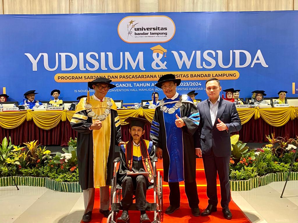 Kini cita cita dan impian Aziz Hermawan terwujud, dia berhasil menuntaskan pendidikan sarjana di prodi Arsitektur UBL. Aziz Hermawan merupakan satu dari 648 wisudawan yang dikukuhkan dalam kegiatan Yudisium dan Wisuda Program Sarjana dan Pascasrjana UBL Periode Ganjil Tahun Akademik 2023 – 2024 yang berlangsung di Mahligai Agung Convention Hall, Rabu (15/11/2023).