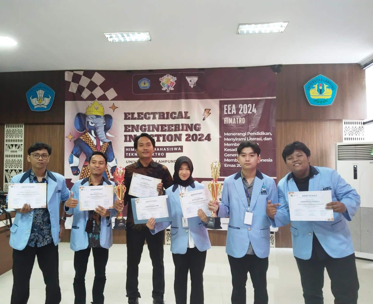 Bandar Lampung – Tim mahasiswa Program Studi (Prodi) Informatika Fakultas Ilmu Komputer (FIK) Universitas Bandar Lampung (UBL) berhasil mengukir prestasi di ajang Electrical Engineering In Action (EEA) 2024 di Universitas Lampung (Unila), yang diselenggarakan pada 19 September – 3 Oktober 2024 lalu. Mereka tergabung dalam tim Tim Debuff dan Codepionners yang berhasil meraih dua juara di Kejuaraan Programming Competition, Tim Debuff meraih Juara I dan Tim Codepionners meraih Juara II.