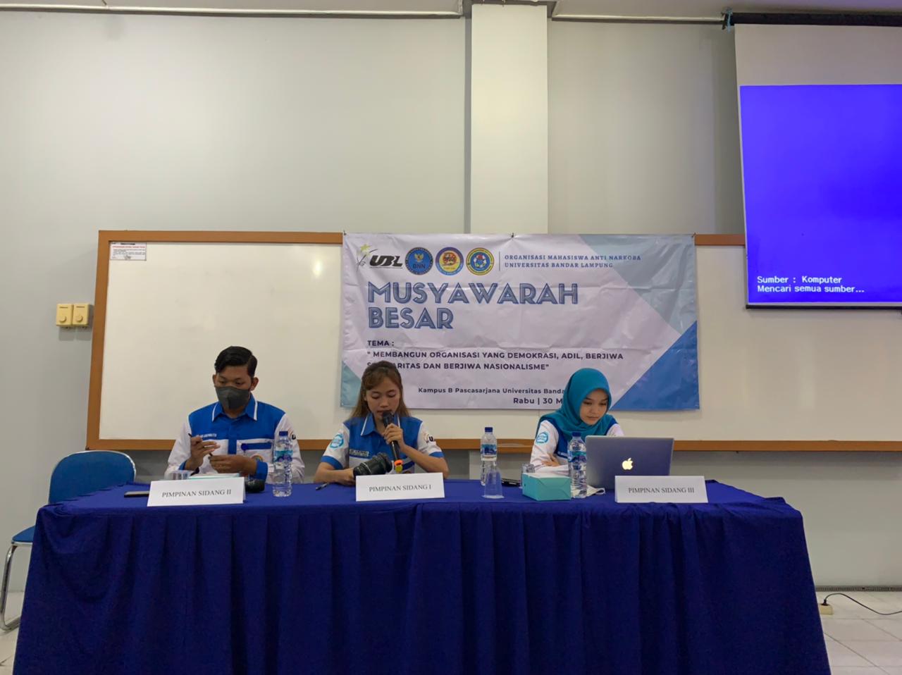 [UBL] : Bandar Lampung , – Organisasi Mahasiswa Anti Narkoba(OMAN) Universitas Bandar Lampung (UBL) telah melaksanakan Musyawarah Besar(Mubes) yang dilaksanakan digedung kampung UBL. Kamis, (31/3/2022).
