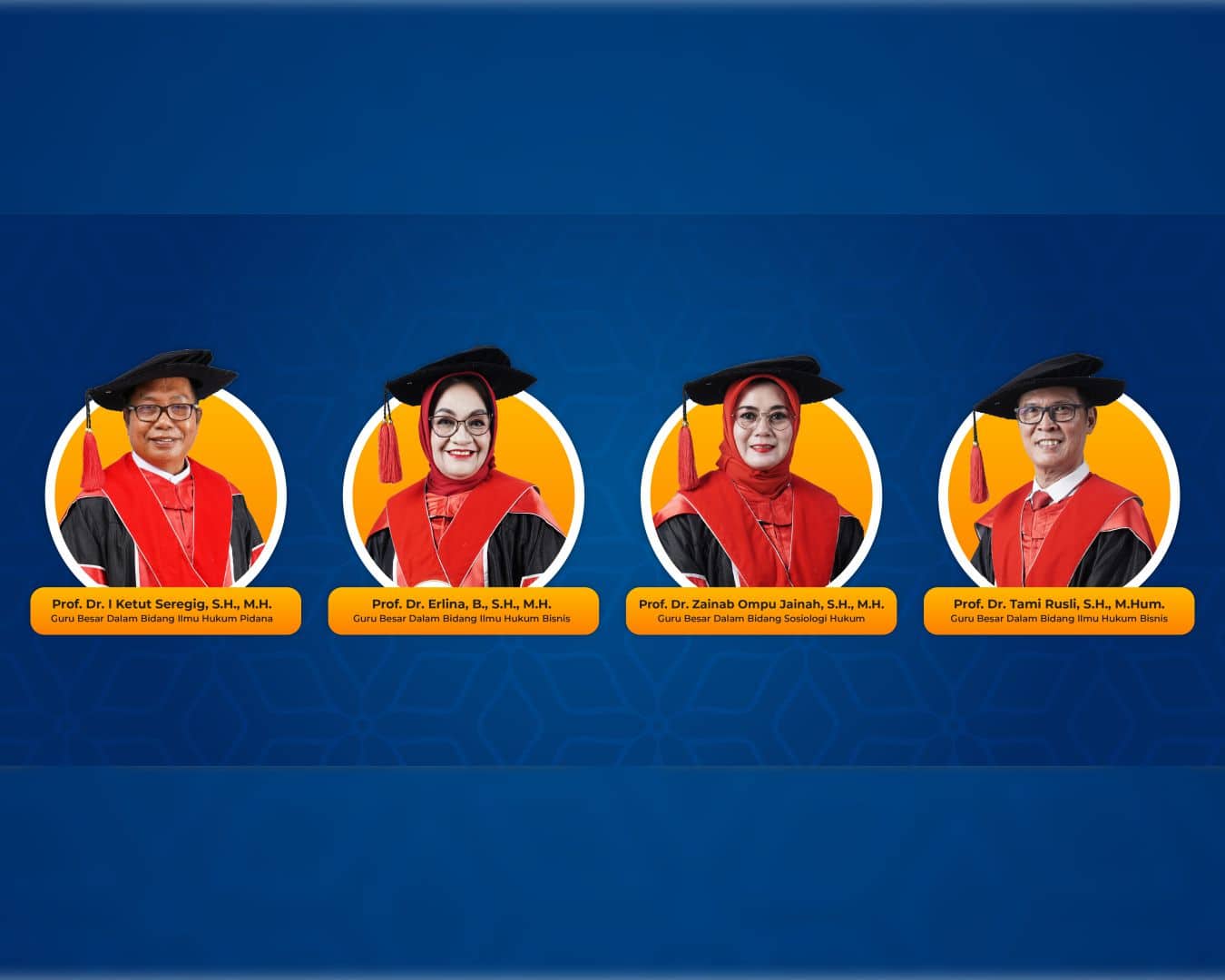 - Prof. Dr. Tami Rusli, S.H., M.Hum., Guru Besar Dalam Bidang Ilmu Hukum Bisnis yang akan menyampaikan orasi ilmiah tentang Formulasi Konsep Perlindungan Hukum Konsumen Dalam Perjanjian Pembiayaan Konsumen Dengan Objek Kendaraan Bermotor Yang Berkeadilan di Indonesia.