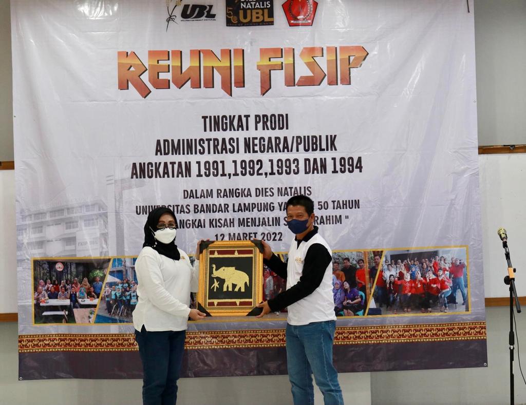 Bandar Lampung – Fakultas Ilmu Sosial dan Ilmu Politik (FISIP) gelar reuni tingkat Program Studi (Prodi) Administrasi Negara/Publik Angkatan 1991, 1992, 1993, 1994 dalam rangka Dies Emas UBL ke-50 yang bertajuk “Merangkai Kisah Menjalin Silaturahim” pada Sabtu (12/03). Kegiatan ini dilaksanakan di Aula Gedung F Universitas Bandar Lampung (UBL) secara offline dengan menerapkan protokol kesehatan.