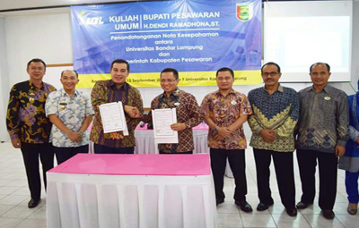 Rektor UBL, Dr. Ir. M. Yusuf Barusman menyambut baik kedatangan Bupati Pesawaran. Ia juga menambahkan bahwa kiprah para mahasiswa UBL pada bidang teknik hingga bidang sosial sudah meluas hingga ke Pesawaran. “Kita melakukan pengabdian kepada masyarakat terhadap riset yang kita punya dan itu diaplikasikan kepada mereka,” Cetusnya Yusuf Barusman.