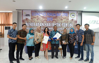 Bandar Lampung – Fakultas Ekonomi dan Bisnis (FEB) Universitas Bandar Lampung (UBL) mengadakan kegiatan Ekonomi Forum Daya (EFD) dengan tema “Penerapan Hari Batik FEB UBL Melestarikan dan Mempopulerkan Batik Pada Generasi Jaman New”. Kegiatan ini dilaksanakan pada tanggal 05 Mei 2018 bertempat di Aula Gedung F Kampus Drs. H. RM. Barusman UBL.