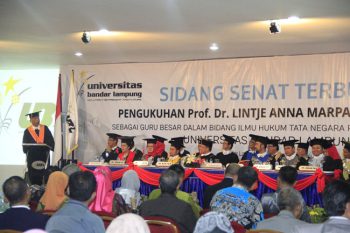 Setelah sukses mengukuhkan profesor pertama yang murni dihasilkan internal Universitas Bandar Lampung (UBL), Prof. Dr. Lintje Anna Marpaung, S.H., M.H., sebagai Guru Besar Hukum Tata Negara di Fakultas Hukum (FH) UBL. UBL bertekad ingin menghasilkan 10 profesor lain diberbagai bidang ilmu dan kepakaran beberapa tahun berikutnya. Hal ini dibenarkan Rektor UBL Dr. Ir. M. Yusuf S. Barusman, MBA., disela pengukuhan Guru Besar Prof. Lintje di Auditorium Gedung M, Kampus Pascasarjana, Dra.Hj. Sri Hayati Barusman, Sabtu (10-12) lalu.