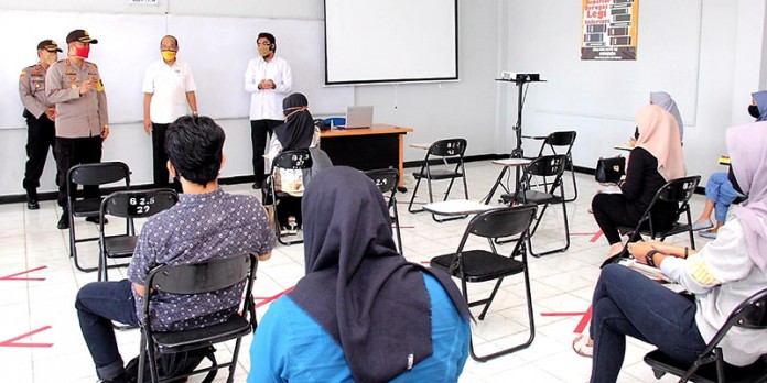 “Kami sejak pagi memantau dan mengecek apakah prosedur protokol kesehatan perkuliahan new normal hari ini berjalan sesuai dengan tahapannya, dan bapak Kapolresta juga turun langsung bersama kita ikut memantau,” jelasnya.