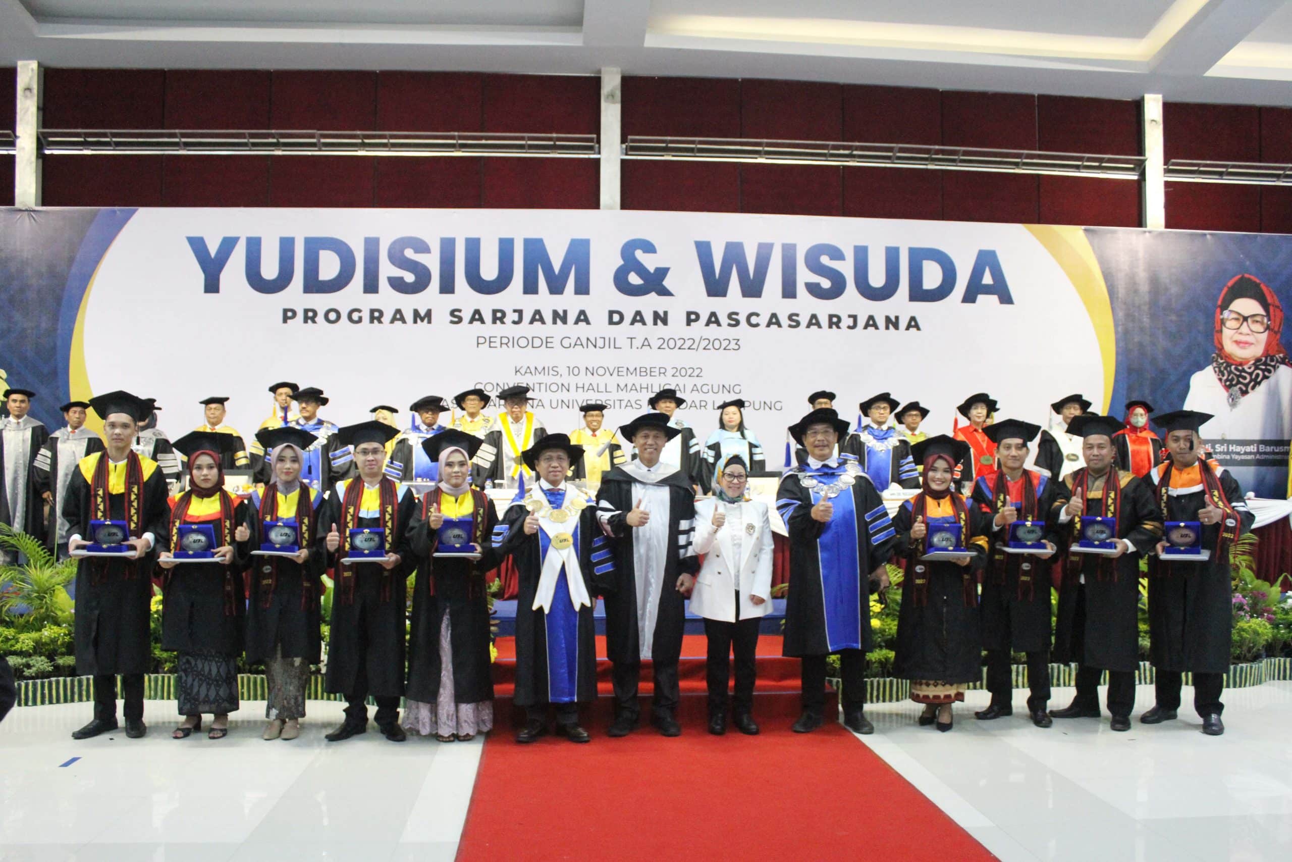 Prosesi yudisium dan wisuda ini dihadiri oleh Gubernur Provinsi Lampung yang pada kesempatan ini di wakili Asisten Administrasi Umum Provinsi Lampung, Kepala Lembaga Layanan Pendidikan Tinggi (LLDIKTI) Wilayah II, Ketua Dewan Pembina Yayasan Administrasi Lampung, Ketua Yayasan Administrasi Lampung beserta jajarannya , Saudara – saudara anggota senat, dan para wisudawan/wisudawati, serta keluarga wisudawan yang berbahagia.